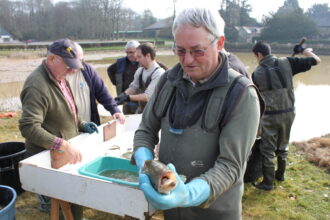 Pierre GEFFRAY était un grand observateur de la Nature. En cela, il s’était aperçu que l’étang du Gué aux Biches dont il s’occupait assidument manquait cruellement d’anguilles et avait entrepris avec l’aide de l’OFB de l’époque, la construction d’une passe à anguille faite « maison », projet qui s’était avéré parfaitement fonctionnel ! C’est à lui que l’on doit la deuxième version de la passe, encore améliorée suite à ses observations permanentes…